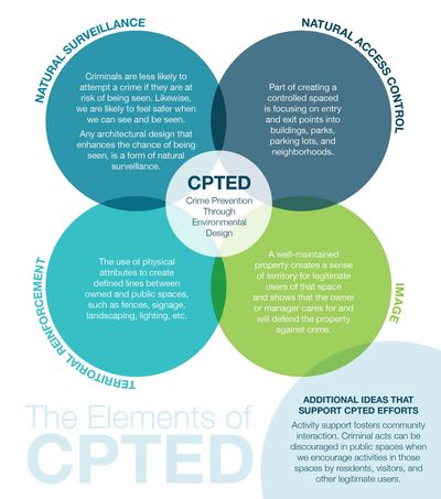Crime prevention through environmental design (CPTED) is a multi-disciplinary approach to deterring criminal behavior through environmental design. CPTED strategies rely upon the ability to influence offender decisions that precede criminal acts. Generally speaking, most implementations of CPTED occur solely within the urbanized, built environment. Specifically altering the physical design of the communities in which humans reside and congregate in order to deter criminal activity is the main goal of CPTED. These principles of design affect elements of the built environment ranging from the small-scale (such as the strategic use of shrubbery and other vegetation) to the overarching, including building form of an entire urban neighborhood and the amount of opportunity for "eyes on the street".